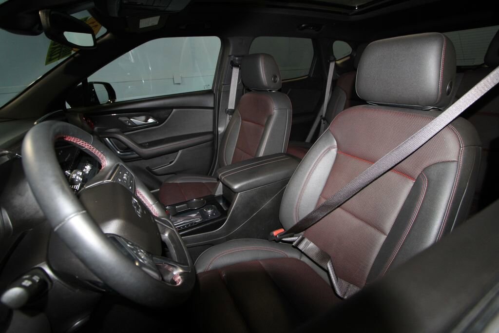 2023 Chevrolet Blazer RS Recent Arrival! We want you to shop confidently for your next used car at D-Patrick Boonville Ford and We make it EASY! Buy this used vehicle 100% online or in-store, EASY. Saving time at the dealership, EASY! Financing, EASY! Finding the car you love at the price you want, EASY! This pre-owned vehicle was put through an extensive inspection before hitting our lot. Because of this, we are able to offer a 3-month/3,000-mile comprehensive limited warranty. You also get our Love It or Return It 5-day, 300-mile Exchange Policy. See our website for more details on both. We also offer extended service plans, vehicle protection plans, and offer a CarFax vehicle history report. *Prices listed do not include a $250 documentation fee, applicable tax, title, tags, license, or $195 service and preparation. All pricing, vehicle information, and features (such as accessories and color) are believed to be accurate, but we do not warrant or guarantee such accuracy. The prices shown above may vary from region to region, and incentives are subject to change. Some offers listed may not be available to all customers. All online sale commitments are subject to confirmation of continued availability of vehicle. Once availability is confirmed, online sale agreement becomes binding upon the parties. If any information found on the website is thought to be erroneous, please verify information with a customer service representative. See dealer for full details. Looking to sell your current vehicle? We buy cars for cash. 3.49 Final Drive Axle Ratio, 4-Wheel Disc Brakes, 6-Way Power Front Passenger Seat Adjuster, 8 Speakers, 8-Way Power Driver Seat Adjuster, ABS brakes, Air Conditioning, Alloy wheels, AM/FM radio: SiriusXM with 360L, Apple CarPlay/Android Auto, Auto High-beam Headlights, Auto-dimming door mirrors, Auto-dimming Rear-View mirror, Automatic temperature control, Bose Premium 8-Speaker Audio System Feature, Brake assist, Bumpers: body-color, Child-Seat-Sensing Airbag, Compass, Delay-off headlights, Driver door bin, Driver vanity mirror, Dual front impact airbags, Dual front side impact airbags, Electronic Stability Control, Emergency communication system: OnStar and Chevrolet connected services capable, Enhanced Convenience Package, Four wheel independent suspension, Front anti-roll bar, Front Bucket Seats, Front Center Armrest, Front dual zone A/C, Front reading lights, Fully automatic headlights, Garage door transmitter, Heated door mirrors, Heated Driver & Front Passenger Seats, Heated front seats, Heated Rear Outboard Seating Positions, Heated Steering Wheel, Heated steering wheel, Illuminated entry, Knee airbag, Leather Shift Knob, Low tire pressure warning, Memory Settings For Driver Seat & Exterior Mirrors, Navigation System, Occupant sensing airbag, Outside temperature display, Overhead airbag, Overhead console, Panic alarm, Passenger door bin, Passenger vanity mirror, Perforated Leather-Appointed Seat Trim, Power door mirrors, Power Driver Lumbar Control, Power driver seat, Power Liftgate, Power Panoramic Tilt-Sliding Sunroof, Power passenger seat, Power steering, Power Tilt & Telescoping Steering Column, Power windows, Preferred Equipment Group 1RS, Premium audio system: Chevrolet Infotainment 3 Premium, Radio data system, Radio: Chevrolet Infotainment 3 Premium System, Rear anti-roll bar, Rear Park Assist w/Audible Warning, Rear reading lights, Rear seat center armrest, Rear window defroster, Rear window wiper, Remote keyless entry, Ride & Handling Suspension, Security system, SiriusXM w/360L, Speed control, Speed-sensing steering, Split folding rear seat, Spoiler, Steering wheel mounted audio controls, Tachometer, Telescoping steering wheel, Tilt steering wheel, Traction control, Trip computer, Turn signal indicator mirrors, Variably intermittent wipers, Ventilated Driver & Front Passenger Seats, Voltmeter, Wheels: 20 Technical Gray Aluminum. CARFAX One-Owner. Clean CARFAX. 4D Sport Utility RS 9-Speed Aut