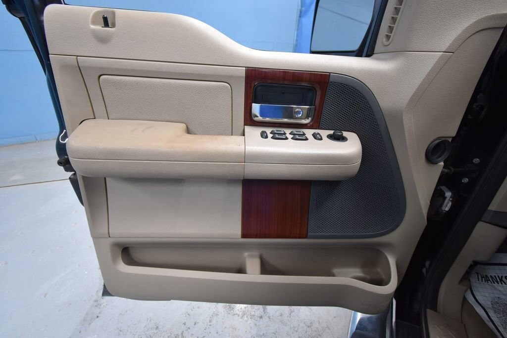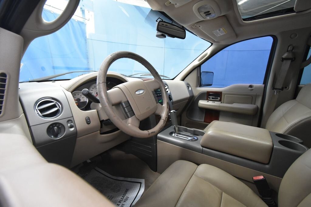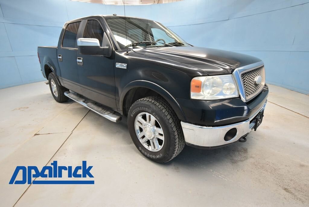 2006 Ford F-150 Lariat Recent Arrival! VEHICLE SOLD AS-IS. We want you to shop confidently for your next used car at D-Patrick Boonville Ford and We make it EASY! Buy this used vehicle 100% online or in-store, EASY. Saving time at the dealership, EASY! Financing, EASY! Finding the car you love at the price you want, EASY! This vehicle’s low price is reflective of its age, condition, and mileage and we do not warrant its mechanical or overall condition. This vehicle is provided with CarFax vehicle history report. This is an AS-IS vehicle and is not available for additional service plans. *Prices listed do not include a $250 documentation fee, applicable tax, title, tags, license, or $195 service and preparation. All pricing, vehicle information, and features (such as accessories and color) are believed to be accurate, but we do not warrant or guarantee such accuracy. The prices shown above may vary from region to region, and incentives are subject to change. Some offers listed may not be available to all customers. All online sale commitments are subject to confirmation of continued availability of vehicle. Once availability is confirmed, online sale agreement becomes binding upon the parties. If any information found on the website is thought to be erroneous, please verify information with a customer service representative. See dealer for full details. Looking to sell your current vehicle? We buy cars for cash. 5.4L V8 EFI 24V, 4WD, 18 Bright Aluminum Wheels, 3.73 Axle Ratio, 4 Speakers, 4-Wheel Disc Brakes, ABS brakes, Air Conditioning, Alloy wheels, AM/FM radio, AM/FM Stereo/Clock/Single CD, Auto-dimming Rear-View mirror, Automatic temperature control, Bumpers: chrome, CD player, Compass, Delay-off headlights, Driver door bin, Driver vanity mirror, Dual front impact airbags, Front anti-roll bar, Front Center Armrest w/Storage, Front fog lights, Front reading lights, Front wheel independent suspension, Fully automatic headlights, GVWR: 7,200 lbs Payload Package, Heated door mirrors, Illuminated entry, Leather steering wheel, Leather-Trimmed 40/20/40 Front Seat, Occupant sensing airbag, Outside temperature display, Overhead console, Panic alarm, Passenger door bin, Passenger vanity mirror, Power door mirrors, Power driver seat, Power Driver Seat, Power steering, Power windows, Rear reading lights, Rear seat center armrest, Rear step bumper, Rear window defroster, Remote keyless entry, Speed control, Split folding rear seat, Steering wheel mounted A/C controls, Steering wheel mounted audio controls, Tachometer, Tilt steering wheel, Trip computer, Turn signal indicator mirrors, Variably intermittent wipers, Voltmeter, 5.4L V8 EFI 24V, 4WD. 4D Crew Cab Lariat 4-Speed Automatic with Overdrive 5.4L V8 EFI 24V 4WD Black Clearcoat CALL US TODAY BEFORE THIS ONE GETS AWAY-- (812) 897-5838 or shop online at www.boonvilleford.com.