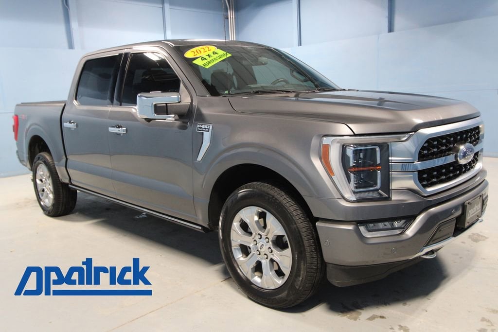 2022 Ford F-150 Platinum We want you to shop confidently for your next used car at The BIG Ford Store, D-Patrick Ford. We are located on Highway 41 and Walnut in Evansville, right next to the Lloyd Expressway. Buy this used vehicle 100% online or in-store. This pre-owned vehicle was put through an extensive inspection before hitting our lot. Because of this, we are able to offer a 3-month/3,000-mile comprehensive limited warranty. You also get our Love It or Return It 5-day, 300-mile Exchange Policy. See our website for more details on both. We also offer extended service plans, vehicle protection plans, and offer a CarFax vehicle history report. *Prices listed do not include a $250 documentation fee, applicable tax, title, tags, license, or $195 service and preparation. All pricing, vehicle information, and features (such as accessories and color) are believed to be accurate, but we do not warrant or guarantee such accuracy. The prices shown above may vary from region to region, and incentives are subject to change. Some offers listed may not be available to all customers. All online sale commitments are subject to confirmation of continued availability of vehicle. Once availability is confirmed, online sale agreement becomes binding upon the parties. If any information found on the website is thought to be erroneous, please verify information with a customer service representative. See dealer for full details. Looking to sell your current vehicle? We buy cars for cash. Every test drive at D-Patrick Ford in Evansville earns $10 to a local charity. Schedule your test drive today! 4WD, ABS brakes, Alloy wheels, Compass, Electronic Stability Control, Front dual zone A/C, Heated door mirrors, Heated front seats, Heated rear seats, Illuminated entry, Integrated Trailer Brake Controller, Low tire pressure warning, Remote keyless entry, Traction control. 4D SuperCrew Platinum 10-Speed Automatic 3.5L V6 EcoBoost 4WD Carbonized Gray Metallic CALL TODAY (812) 625-4823 OR SHOP ONLINE AT WWW.DPATRICKFORD.COM.