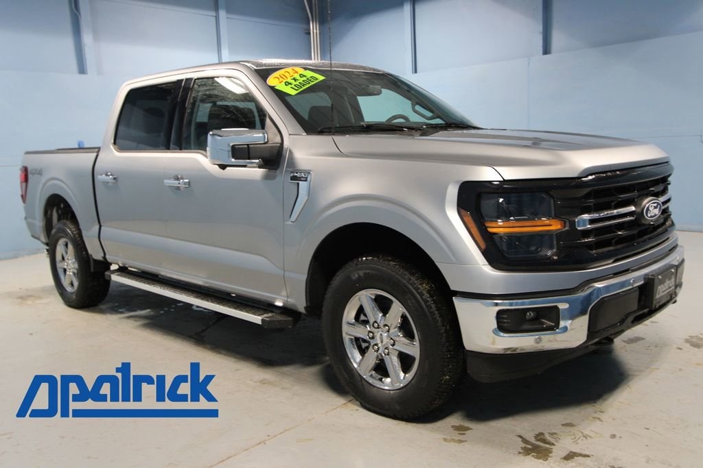 2024 Ford F-150 XLT We want you to shop confidently for your next used car at The BIG Ford Store, D-Patrick Ford. We are located on Highway 41 and Walnut in Evansville, right next to the Lloyd Expressway. Buy this used vehicle 100% online or in-store. This pre-owned vehicle was put through an extensive inspection before hitting our lot. Because of this, we are able to offer a 3-month/3,000-mile comprehensive limited warranty. You also get our Love It or Return It 5-day, 300-mile Exchange Policy. See our website for more details on both. We also offer extended service plans, vehicle protection plans, and offer a CarFax vehicle history report. *Prices listed do not include a $250 documentation fee, applicable tax, title, tags, license, or $195 service and preparation. All pricing, vehicle information, and features (such as accessories and color) are believed to be accurate, but we do not warrant or guarantee such accuracy. The prices shown above may vary from region to region, and incentives are subject to change. Some offers listed may not be available to all customers. All online sale commitments are subject to confirmation of continued availability of vehicle. Once availability is confirmed, online sale agreement becomes binding upon the parties. If any information found on the website is thought to be erroneous, please verify information with a customer service representative. See dealer for full details. Looking to sell your current vehicle? We buy cars for cash. Every test drive at D-Patrick Ford in Evansville earns $10 to a local charity. Schedule your test drive today! 4WD, 4 Pickup Box Tie-Down Plates, 4-Wheel Disc Brakes, 400W Cab & Bed Outlets, 6 Speakers, ABS brakes, Adaptive Cruise Control w/Stop & Go, Air Conditioning, Alloy wheels, AM/FM radio: SiriusXM with 360L, Auto High-beam Headlights, Auto-Dimming Rear-View Mirror, Auto-dimming Rear-View mirror, Automatic temperature control, Bed Utility Package, Brake assist, Bumpers: chrome, Chrome wheels, Cloth 40/20/40 Front Seat, Cloth 40/Console/40 Front Seats, Compass, Delay-off headlights, Driver door bin, Driver vanity mirror, Dual front impact airbags, Dual front side impact airbags, Electronic Stability Control, Emergency communication system: SYNC 4 911 Assist, Equipment Group 302A Mid, Ford BlueCruise Equipped (90-Day Trial), Front anti-roll bar, Front Center Armrest w/Storage, Front dual zone A/C, Front fog lights, Front License Plate Bracket, Front reading lights, Front wheel independent suspension, Fully automatic headlights, Heated door mirrors, Heated Front Seats, Illuminated entry, Intelligent Access w/Push Button Start, LED Box Lighting, Low tire pressure warning, Navigation system: Connected Navigation, Occupant sensing airbag, Outside temperature display, Overhead airbag, Overhead console, Panic alarm, Passenger door bin, Passenger vanity mirror, Power door mirrors, Power driver seat, Power Glass Heated Sideview Mirrors, Power steering, Power windows, Power-Sliding Rear Window, Radio data system, Radio: AM/FM SiriusXM w/360L, Rear reading lights, Rear step bumper, Rear window defroster, Remote keyless entry, Remote Start System w/Remote Tailgate Release, Security system, Speed control, Speed Sign Recognition, Split folding rear seat, Steering wheel mounted audio controls, SYNC 4 w/Enhanced Voice Recognition, Tachometer, Tailgate Step w/Tailgate Work Surface, Telescoping steering wheel, Tilt steering wheel, Tow/Haul Package, Traction control, Tray Style Floor Liner w/Carpet Mats, Trip computer, Variably intermittent wipers, Voltmeter, Wheels: 18 Chrome-Like PVD, 4WD. CARFAX One-Owner. 4D SuperCrew XLT 10-Speed Automatic 3.5L V6 EcoBoost 4WD Silver Metallic CALL TODAY (812) 625-4823 OR SHOP ONLINE AT WWW.DPATRICKFORD.COM.