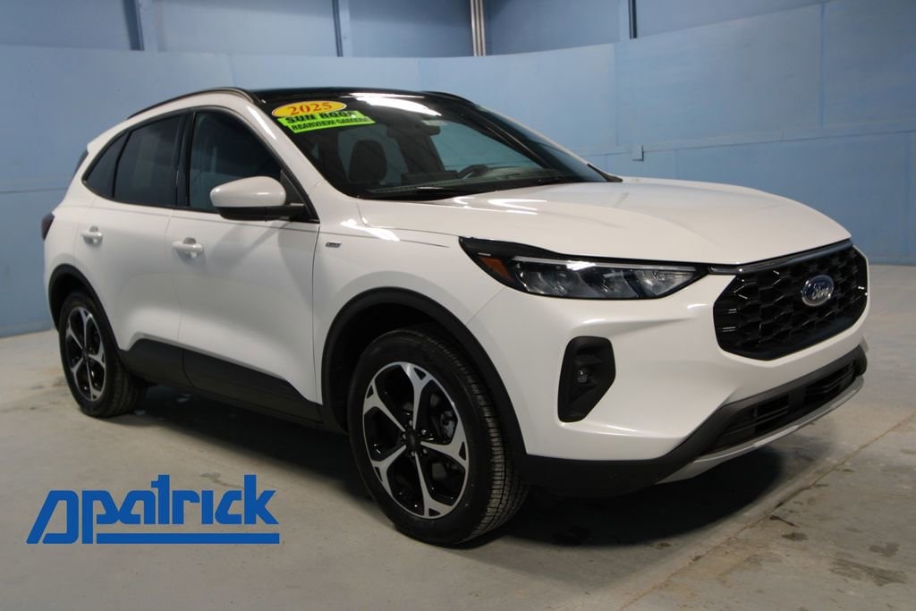 2025 Ford Escape ST-Line Select Recent Arrival! We want you to shop confidently for your next used car at The BIG Ford Store, D-Patrick Ford. We are located on Highway 41 and Walnut in Evansville, right next to the Lloyd Expressway. Buy this used vehicle 100% online or in-store. This pre-owned vehicle was put through an extensive inspection before hitting our lot. Because of this, we are able to offer a 3-month/3,000-mile comprehensive limited warranty. You also get our Love It or Return It 5-day, 300-mile Exchange Policy. See our website for more details on both. We also offer extended service plans, vehicle protection plans, and offer a free to you CarFax vehicle history report. *Prices listed do not include a $250 documentation fee, applicable tax, title, tags, license, or $195 service and preparation. All pricing, vehicle information, and features (such as accessories and color) are believed to be accurate, but we do not warrant or guarantee such accuracy. The prices shown above may vary from region to region, and incentives are subject to change. Some offers listed may not be available to all customers. All online sale commitments are subject to confirmation of continued availability of vehicle. Once availability is confirmed, online sale agreement becomes binding upon the parties. If any information found on the website is thought to be erroneous, please verify information with a customer service representative. See dealer for full details. Looking to sell your current vehicle? We buy cars for cash. Every test drive at D-Patrick Ford in Evansville earns $10 to a local charity. Schedule your test drive today! AWD, 2.91 Axle Ratio, 4-Wheel Disc Brakes, 6 Speakers, ABS brakes, Adaptive Cruise Control w/Stop-and-Go, Air Conditioning, Alloy wheels, AM/FM radio: SiriusXM, AM/FM Stereo, Auto High-beam Headlights, Automatic temperature control, Black Roof-Rack Side Rails, Brake assist, Bumpers: body-color, Compass, Connected Navigation, Delay-off headlights, Driver door bin, Driver vanity mirror, Dual front impact airbags, Dual front side impact airbags, Electronic Fuel Door Release, Electronic Stability Control, Emergency communication system: SYNC 4 911 Assist, Equipment Group 401A, Ford Co-Pilot360 Assist+, FordPass Connect, Four wheel independent suspension, Front anti-roll bar, Front Bucket Seats, Front Center Armrest, Front dual zone A/C, Front fog lights, Front reading lights, Fully automatic headlights, Heated door mirrors, Heated front seats, Heated steering wheel, Heated Vinyl/Cloth Front Sport Contour Bucket Seats, Illuminated entry, Internet access capable: FordPass Connect 4G, Intersection Assist, Knee airbag, Low tire pressure warning, Neutral Towing Capability, Occupant sensing airbag, Outside temperature display, Overhead airbag, Overhead console, Panic alarm, Panoramic Vista Roof, Passenger door bin, Passenger vanity mirror, Pedestrian Alert Sounder, Power door mirrors, Power driver seat, Power Liftgate, Power steering, Power windows, Predictive Speed Assist, Radio data system, Rear anti-roll bar, Rear Parking Sensor, Rear reading lights, Rear seat center armrest, Rear window defroster, Rear window wiper, Rear-View Camera, Remote keyless entry, Speed control, Speed-sensing steering, Speed-Sensitive Wipers, Split folding rear seat, Spoiler, Sport steering wheel, Steering wheel mounted audio controls, SYNC 4, SYNC 4 w/Enhanced Voice Recognition, Tachometer, Tech Pack #1, Telescoping steering wheel, Tilt steering wheel, Traction control, Trip computer, Variably intermittent wipers, Wheels: 18 Rock Metallic Painted Aluminum, Wheels: 19 Machined-Face Ebony-Painted Aluminum, AWD. CARFAX One-Owner. 4D Sport Utility ST-Line Select 8-Speed Automatic EcoBoost 2.0L I4 GTDi DOHC Turbocharged VCT AWD White Metallic CALL TODAY (812) 625-4823 OR SHOP ONLINE AT WWW.DPATRICKFORD.COM.