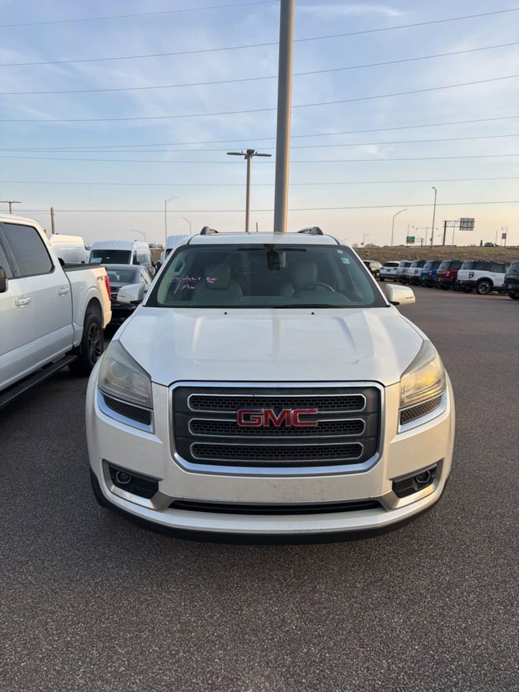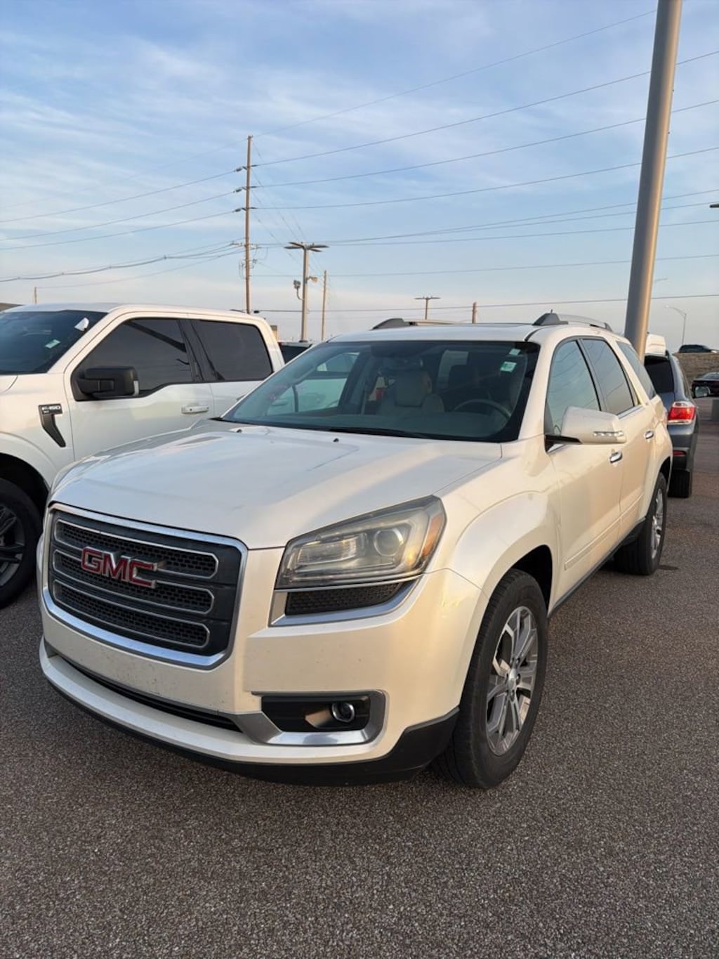 2013 GMC Acadia SLT-2 VEHICLE SOLD AS-IS. We want you to shop confidently for your next used car at The BIG Ford Store, D-Patrick Ford. We are located on Highway 41 and Walnut in Evansville, right next to the Lloyd Expressway. This vehicleâs low price is reflective of its age, condition, and mileage and we do not warrant its mechanical or overall condition. This vehicle is provided with a CarFax vehicle history report. This is an AS-IS vehicle and is not available for additional service plans. *Prices listed do not include a $250 documentation fee, applicable tax, title, tags, license, or $195 service and preparation. All pricing, vehicle information, and features (such as accessories and color) are believed to be accurate, but we do not warrant or guarantee such accuracy. The prices shown above may vary from region to region, and incentives are subject to change. Some offers listed may not be available to all customers. All online sale commitments are subject to confirmation of continued availability of vehicle. Once availability is confirmed, online sale agreement becomes binding upon the parties. If any information found on the website is thought to be erroneous, please verify information with a customer service representative. See dealer for full details. Looking to sell your current vehicle? We buy cars for cash. Every test drive at D-Patrick Ford in Evansville earns $10 to a local charity. Schedule your test drive today! FWD, Light Titanium Leather, 10 Speakers, 19 x 7.5 Aluminum (4) Wheels, 2-Position Memory For Driver's Seat Adjuster, 3.16 Axle Ratio, 3rd row seats: split-bench, 4-Wheel Disc Brakes, 7-Passenger Seating (2-2-3 Seating Configuration), 8-Way Power Driver Seat, 8-Way Power Passenger Seat Adjuster, ABS brakes, Acoustical Insulation Package, Air Conditioning, Alloy wheels, AM/FM radio: SiriusXM, Auto-dimming door mirrors, Auto-dimming Rear-View mirror, Automatic temperature control, Body-Color Bodyside Moldings, Bodyside moldings, Bose Premium 10-Speaker Audio System, Brake assist, Bumpers: body-color, Carpeted Removable Front 2nd & 3rd Row Floor Mats, CD player, Compass, Delay-off headlights, Driver door bin, Driver vanity mirror, Dual Downturn Tailpipe Exhaust, Dual front impact airbags, Dual front side impact airbags, Dual SkyScape 2-Panel Power Sunroof, Electronic Stability Control, Emergency communication system: OnStar Directions & Connections, Exterior Parking Camera Rear, Four wheel independent suspension, Front anti-roll bar, Front Bucket Seats, Front Center Armrest w/Storage, Front dual zone A/C, Front fog lights, Front reading lights, Fully automatic headlights, Garage door transmitter, Heated door mirrors, Heated Driver & Front Passenger Seats, Heated front seats, Heated Power-Adjustable Outside Mirrors, Illuminated entry, Inside Rear-View Auto-Dimming Mirror, Leather Shift Knob, Leather-Appointed Seat Trim, Leather-Wrapped Steering Wheel, Low tire pressure warning, Memory seat, NavTraffic, Occupant sensing airbag, Outside temperature display, Overhead airbag, Panic alarm, Passenger door bin, Passenger vanity mirror, Power door mirrors, Power driver seat, Power Liftgate, Power passenger seat, Power Rear Liftgate Body, Power steering, Power windows, Power Windows w/Driver Express-Up & -Down, Preferred Equipment Group 4SB, Radio data system, Radio: Color Touch AM/FM/HD/CD Player w/IntelliLink, Radio: Color Touch AM/FM/HD/CD Player w/Navi, Rear air conditioning, Rear anti-roll bar, Rear audio controls, Rear Audio System Controls, Rear reading lights, Rear window defroster, Rear window wiper, Reclining Bucket Seats, Remote keyless entry, Remote Vehicle Start, Ride & Handling Suspension, Roof rack: rails only, Security system, Side Blind Zone Alert & Rear Cross Traffic Alert, SiriusXM Satellite Radio, Speed control, Speed-sensing steering, Spoiler, Steering Wheel Mounted Audio Controls, Steering wheel mounted audio controls, Tachometer, Telescoping steering wheel, Tilt & Telescopic Steering Column