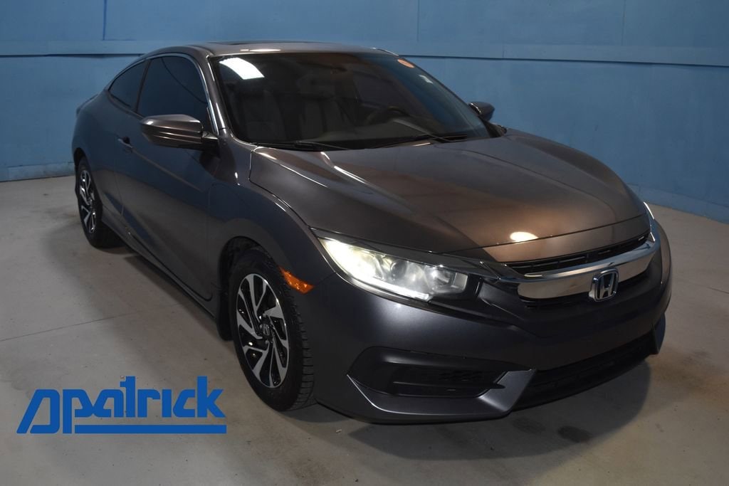 2016 Honda Civic LX-P **Prices listed do not include a $250 documentation fee, applicable tax, title, tags, license, or $195 service and preparation. All pricing, vehicle information, and features (such as accessories and color) are believed to be accurate, but we do not warrant or guarantee such accuracy. The prices shown above may vary from region to region, and incentives are subject to change. Some offers listed may not be available to all customers. All online sale commitments are subject to confirmation of continued availability of vehicle. Once availability is confirmed, online sale agreement becomes binding upon the parties. If any information found on the website is thought to be erroneous, please verify information with a customer service representative. See dealer for full details. Black w/Cloth Seat Trim, 16 Alloy Wheels, 4 Speakers, 4-Wheel Disc Brakes, ABS brakes, Air Conditioning, Alloy wheels, AM/FM radio, Automatic temperature control, Brake assist, Bumpers: body-color, Cloth Seat Trim, Compass, Delay-off headlights, Driver door bin, Driver vanity mirror, Dual front impact airbags, Dual front side impact airbags, Electronic Stability Control, Exterior Parking Camera Rear, Four wheel independent suspension, Front anti-roll bar, Front Bucket Seats, Front Center Armrest, Front reading lights, Fully automatic headlights, Illuminated entry, Low tire pressure warning, Occupant sensing airbag, Outside temperature display, Overhead airbag, Panic alarm, Passenger door bin, Passenger vanity mirror, Power door mirrors, Power moonroof, Power steering, Power windows, Radio data system, Radio: 160-Watt AM/FM Audio System, Rear anti-roll bar, Rear window defroster, Reclining Front Bucket Seats, Remote keyless entry, Security system, Speed control, Speed-sensing steering, Split folding rear seat, Steering wheel mounted audio controls, Tachometer, Telescoping steering wheel, Tilt steering wheel, Traction control, Trip computer, Black w/Cloth Seat Trim. 2D Coupe LX-P CVT 2.0L I4 DOHC 16V i-VTEC FWD Gray (812) 477-6201 and shop online at www.dpathonda.com.