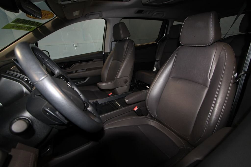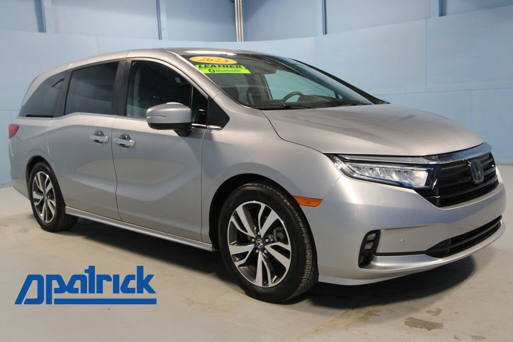 2023 Honda Odyssey Touring We want you to shop confidently for your next used car at The BIG Ford Store, D-Patrick Ford. We are located on Highway 41 and Walnut in Evansville, right next to the Lloyd Expressway. Buy this used vehicle 100% online or in-store. This pre-owned vehicle was put through an extensive inspection before hitting our lot. Because of this, we are able to offer a 3-month/3,000-mile comprehensive limited warranty. You also get our Love It or Return It 5-day, 300-mile Exchange Policy. See our website for more details on both. We also offer extended service plans, vehicle protection plans, and offer a free to you CarFax vehicle history report. *Prices listed do not include a $250 documentation fee, applicable tax, title, tags, license, or $195 service and preparation. All pricing, vehicle information, and features (such as accessories and color) are believed to be accurate, but we do not warrant or guarantee such accuracy. The prices shown above may vary from region to region, and incentives are subject to change. Some offers listed may not be available to all customers. All online sale commitments are subject to confirmation of continued availability of vehicle. Once availability is confirmed, online sale agreement becomes binding upon the parties. If any information found on the website is thought to be erroneous, please verify information with a customer service representative. See dealer for full details. Looking to sell your current vehicle? We buy cars for cash. Every test drive at D-Patrick Ford in Evansville earns $10 to a local charity. Schedule your test drive today! 3.61 Axle Ratio, 3rd row seats: split-bench, 4-Wheel Disc Brakes, 7 Speakers, A/V remote: CabinControl, ABS brakes, Adaptive Cruise Control: Adaptive Cruise Control (ACC) with Low-Speed Follow, Air Conditioning, Alloy wheels, AM/FM radio: SiriusXM, Anti-whiplash front head restraints, Apple CarPlay/Android Auto, Auto High-beam Headlights, Auto-dimming Rear-View mirror, Automatic temperature control, Blind Spot Information (BSI) System warning, Brake assist, Bumpers: body-color, CD player, Compass, Delay-off headlights, Driver door bin, Driver vanity mirror, Driver's Seat Mounted Armrest, Dual front impact airbags, Dual front side impact airbags, DVD-Audio, Electronic Stability Control, Emergency communication system: HondaLink, Exterior Parking Camera Rear, Four wheel independent suspension, Front anti-roll bar, Front Bucket Seats, Front dual zone A/C, Front fog lights, Front reading lights, Fully automatic headlights, Garage door transmitter: HomeLink, Headphones, Heated door mirrors, Heated Front Bucket Seats, Heated front seats, Illuminated entry, Knee airbag, Lane departure: Lane Keeping Assist System (LKAS) active, Leather Seat Trim, Leather steering wheel, Low tire pressure warning, Memory seat, Navigation system: Honda Satellite-Linked Navigation System, Occupant sensing airbag, Outside temperature display, Overhead airbag, Overhead console, Panic alarm, Passenger door bin, Passenger seat mounted armrest, Passenger vanity mirror, Power door mirrors, Power driver seat, Power Liftgate, Power moonroof, Power passenger seat, Power steering, Power windows, Radio data system, Radio: 160-Watt AM/FM/HD/SiriusXM Audio System, Rear air conditioning, Rear anti-roll bar, Rear audio controls, Rear reading lights, Rear seat center armrest, Rear window defroster, Rear window wiper, Reclining 3rd row seat, Remote keyless entry, Security system, Speed control, Speed-sensing steering, Speed-Sensitive Wipers, Split folding rear seat, Spoiler, Steering wheel mounted audio controls, Tachometer, Telescoping steering wheel, Tilt steering wheel, Traction control, Trip computer, Turn signal indicator mirrors, Variably intermittent wipers, Wheels: 19 Machine-Finished Alloy. Clean CARFAX. 4D Passenger Van Touring 10-Speed Automatic 3.5L V6 SOHC i-VTEC 24V FWD Lunar Silver Metallic CALL TODAY (812) 625-4823 OR SHOP ONLINE AT WWW.DPATRICKFORD.COM.