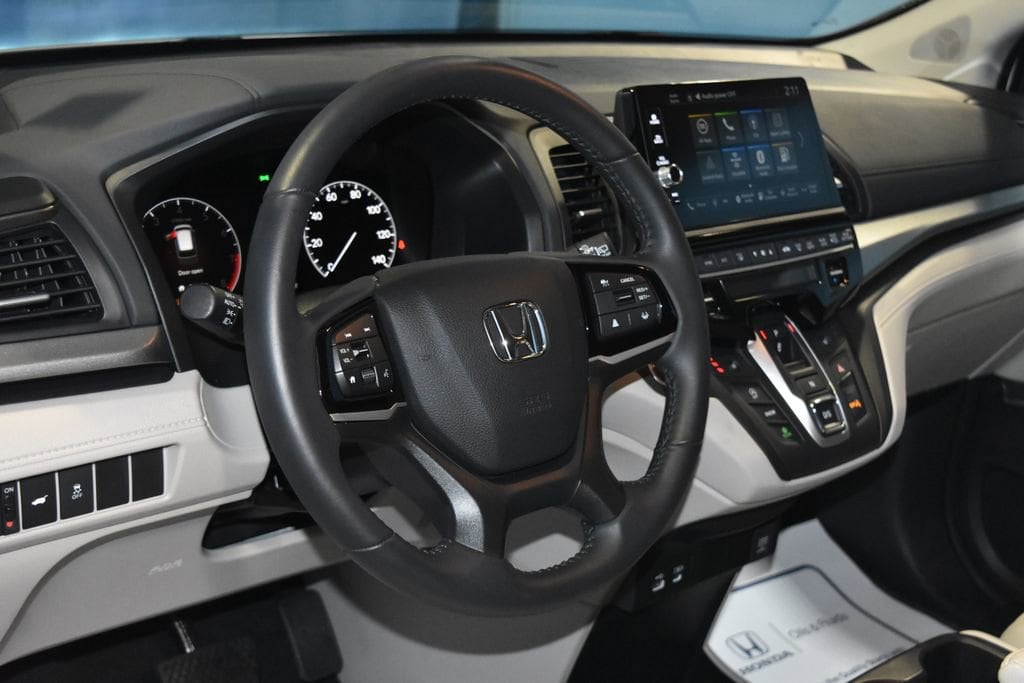 2025 Honda Odyssey EX-L **Prices listed do not include a $250 documentation fee, applicable tax, title, tags, license, or $195 service and preparation. All pricing, vehicle information, and features (such as accessories and color) are believed to be accurate, but we do not warrant or guarantee such accuracy. The prices shown above may vary from region to region, and incentives are subject to change. Some offers listed may not be available to all customers. All online sale commitments are subject to confirmation of continued availability of vehicle. Once availability is confirmed, online sale agreement becomes binding upon the parties. If any information found on the website is thought to be erroneous, please verify information with a customer service representative. See dealer for full details. 18" Machine-Finished Alloy Wheels, 3rd row seats: split-bench, 4-Wheel Disc Brakes, 7 Speakers, ABS brakes, Adaptive Cruise Control: Adaptive Cruise Control (ACC) with Low-Speed Follow, Air Conditioning, Alloy wheels, AM/FM radio: SiriusXM, Anti-whiplash front head restraints, Apple CarPlay/Android Auto, Auto High-beam Headlights, Auto-dimming Rear-View mirror, Automatic temperature control, Blind Spot Information (BSI) System warning, Brake assist, Bumpers: body-color, Delay-off headlights, Driver door bin, Driver vanity mirror, Driver's Seat Mounted Armrest, Dual front impact airbags, Dual front side impact airbags, Electronic Stability Control, Exterior Parking Camera Rear, Four wheel independent suspension, Front anti-roll bar, Front Bucket Seats, Front dual zone A/C, Front fog lights, Front reading lights, Fully automatic headlights, Garage door transmitter: HomeLink, Heated door mirrors, Heated Front Bucket Seats, Heated front seats, Illuminated entry, Knee airbag, Lane departure: Lane Keeping Assist System (LKAS) active, Leather steering wheel, Leather Trimmed Seats, Low tire pressure warning, Memory seat, Occupant sensing airbag, Outside temperature display, Overhead airbag, Overhead console, Panic alarm, Passenger door bin, Passenger seat mounted armrest, Passenger vanity mirror, Power door mirrors, Power driver seat, Power Liftgate, Power moonroof, Power passenger seat, Power steering, Power windows, Radio data system, Radio: 160-Watt AM/FM/HD/SiriusXM Audio System, Rear air conditioning, Rear anti-roll bar, Rear reading lights, Rear seat center armrest, Rear window defroster, Rear window wiper, Reclining 3rd row seat, Remote keyless entry, Security system, Speed control, Speed-sensing steering, Speed-Sensitive Wipers, Split folding rear seat, Spoiler, Steering wheel mounted audio controls, Tachometer, Telescoping steering wheel, Tilt steering wheel, Traction control, Trip computer, Turn signal indicator mirrors, Variably intermittent wipers. CARFAX One-Owner. Clean CARFAX. 4D Passenger Van EX-L 10-Speed Automatic 3.5L V6 SOHC i-VTEC 24V FWD Platinum White Pearl (812) 477-6201 and shop online at www.dpathonda.com.