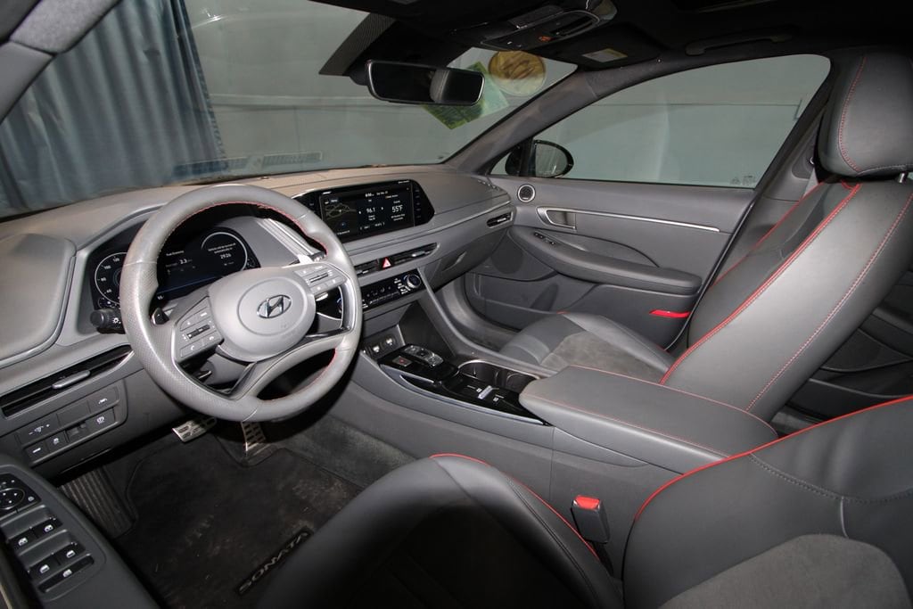 Every test drive at D-Patrick Ford in Evansville earns $10 to a local charity. Schedule your test drive today! Black Artificial Leather, 4-Wheel Disc Brakes, 6 Speakers, ABS brakes, Air Conditioning, Alloy wheels, AM/FM radio: SiriusXM, Apple CarPlay & Android Auto, Auto High-beam Headlights, Auto-dimming Rear-View mirror, Automatic temperature control, Blue Link Connected Care & Remote Package, Bose Premium Audio, Brake assist, Bumpers: body-color, Cargo Blocks, Cargo Hook, Cargo Net, Cargo Package, Cargo Side Bins, Carpeted Floor Mats, Delay-off headlights, Dinamica Suede/Leatherette Seating Surfaces, Driver door bin, Driver vanity mirror, Dual front impact airbags, Dual front side impact airbags, Electronic Stability Control, Emergency communication system: Blue Link Connected Care (3-year subscription), Exterior Parking Camera Rear, Four wheel independent suspension, Front anti-roll bar, Front Bucket Seats, Front Center Armrest, Front dual zone A/C, Front reading lights, Fully automatic headlights, Garage door transmitter: HomeLink, Heated door mirrors, Heated Front Bucket Seats, Heated front seats, Highway Drive Assist (HDA), Illuminated entry, Knee airbag, LED Interior Lights, Low tire pressure warning, Occupant sensing airbag, Option Group 06, Outside temperature display, Overhead airbag, Overhead console, Panic alarm, Panoramic Sunroof, Passenger door bin, Passenger vanity mirror, Power door mirrors, Power driver seat, Power steering, Power windows, Radio data system, Radio: AM/FM/HD/SiriusXM Display Audio w/Nav, Radio: AM/FM/MP3/HD/SiriusXM Display Audio, Rear anti-roll bar, Rear seat center armrest, Rear side impact airbag, Rear window defroster, Remote keyless entry, Reversible Cargo Tray, Security system, Speed control, Speed-sensing steering, Speed-Sensitive Wipers, Split folding rear seat, Steering wheel mounted audio controls, Tachometer, Tech Package, Telescoping steering wheel, Tilt steering wheel, Traction control, Trip computer, Turn signal indicator mirrors, Variably intermittent wipers, Wheels: 18 x 7.5J Sport Finish Aluminum Alloy, Wireless Phone Charging, Black Artificial Leather. CARFAX One-Owner. 4D Sedan SEL Plus 8-Speed Automatic with Overdrive 1.6L I4 FWD Hampton Gray CALL TODAY (812) 625-4823 OR SHOP ONLINE AT WWW.DPATRICKFORD.COM.
