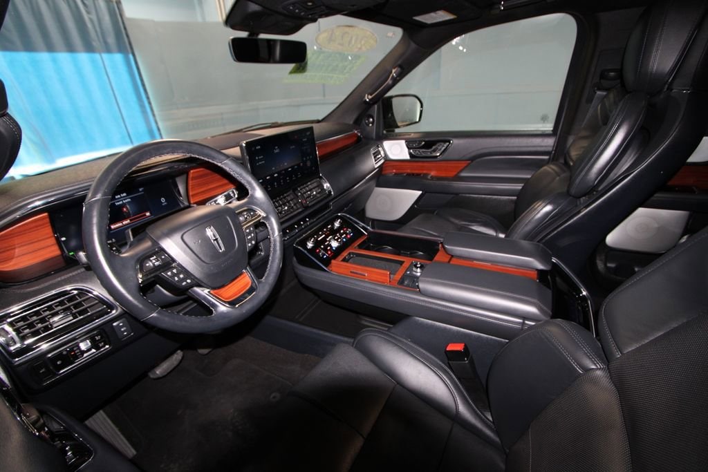 2024 Lincoln Navigator L Reserve We want you to shop confidently for your next used car at The BIG Ford Store, D-Patrick Ford. We are located on Highway 41 and Walnut in Evansville, right next to the Lloyd Expressway. Buy this used vehicle 100% online or in-store. This pre-owned vehicle was put through an extensive inspection before hitting our lot. Because of this, we are able to offer a 3-month/3,000-mile comprehensive limited warranty. You also get our Love It or Return It 5-day, 300-mile Exchange Policy. See our website for more details on both. We also offer extended service plans, vehicle protection plans, and offer a CarFax vehicle history report. *Prices listed do not include a $250 documentation fee, applicable tax, title, tags, license, or $195 service and preparation. All pricing, vehicle information, and features (such as accessories and color) are believed to be accurate, but we do not warrant or guarantee such accuracy. The prices shown above may vary from region to region, and incentives are subject to change. Some offers listed may not be available to all customers. All online sale commitments are subject to confirmation of continued availability of vehicle. Once availability is confirmed, online sale agreement becomes binding upon the parties. If any information found on the website is thought to be erroneous, please verify information with a customer service representative. See dealer for full details. Looking to sell your current vehicle? We buy cars for cash. Every test drive at D-Patrick Ford in Evansville earns $10 to a local charity. Schedule your test drive today! 14 Speakers, 26mm Radiator, 3.73 Axle Ratio, 3rd row seats: split-bench, 4-Wheel Disc Brakes, ABS brakes, Adaptive suspension, Adjustable pedals, Air Conditioning, Alloy wheels, AM/FM radio: SiriusXM with 360L, Apple CarPlay/Android Auto, Audio memory, Auto High-beam Headlights, Auto Start-Stop Technology, Auto tilt-away steering wheel, Auto-dimming door mirrors, Auto-dimming Rear-View mirror, Auto-leveling suspension, Automatic temperature control, Bodyside moldings, Brake assist, Bumpers: body-color, Class IV w/4-Pin & 7-Pin Connectors, Compass, Delay-off headlights, Driver door bin, Driver vanity mirror, Driver's Seat Mounted Armrest, Dual front impact airbags, Dual front side impact airbags, Electronic Stability Control, Electronic Traction Assist (eLSD), Emergency communication system: 911 Assist, Equipment Group 201A Reserve I, Exterior Parking Camera Rear, Four wheel independent suspension, Front anti-roll bar, Front Bucket Seats, Front dual zone A/C, Front fog lights, Front reading lights, Front Tow Hooks, Fully automatic headlights, Garage door transmitter, Genuine wood dashboard insert, Genuine wood door panel insert, Head restraints memory, Heads-Up Display, Heated door mirrors, Heated front seats, Heated rear seats, Heated steering wheel, Heavy-Duty Trailer Tow Package, HVAC memory, Illuminated 1st & 2nd Row Seat Belts, Illuminated entry, Lane Departure Warning System, Leather steering wheel, Lincoln Lit Star in Grille, Low tire pressure warning, Luxury Package, Memory seat, Navigation system: Connected Navigation (1-year trial), Occupant sensing airbag, Outside temperature display, Overhead airbag, Overhead console, Panic alarm, Passenger door bin, Passenger seat mounted armrest, Passenger vanity mirror, Pedal memory, Perfect Position Seats (30-Way) w/Active Motion, Power adjustable rear head restraints, Power door mirrors, Power driver seat, Power Liftgate, Power moonroof: Panoramic Vista Roof, Power passenger seat, Power steering, Power windows, Prem Lthr Auto Htd/Ventiltd Perfect Position Seats, Pro-Trailer Backup Assist 2.0, Radio data system, Radio: Revel Audio System w/Satelllite/AM/FM/HD, Radio: Revel Ultima 3D Audio System w/28 Speakers, Rain sensing wipers, Rear air conditioning, Rear anti-roll bar, Rear audio controls, Rear reading lights, Rear window defroster, Rear window wiper, Reclining 3rd row seat, Remote keyless e