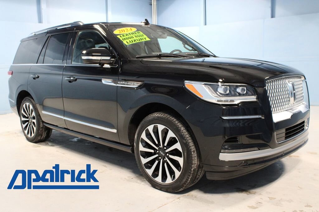 2024 Lincoln Navigator Reserve We want you to shop confidently for your next used car at The BIG Ford Store, D-Patrick Ford. We are located on Highway 41 and Walnut in Evansville, right next to the Lloyd Expressway. Buy this used vehicle 100% online or in-store. This pre-owned vehicle was put through an extensive inspection before hitting our lot. Because of this, we are able to offer a 3-month/3,000-mile comprehensive limited warranty. You also get our Love It or Return It 5-day, 300-mile Exchange Policy. See our website for more details on both. We also offer extended service plans, vehicle protection plans, and offer a CarFax vehicle history report. *Prices listed do not include a $250 documentation fee, applicable tax, title, tags, license, or $195 service and preparation. All pricing, vehicle information, and features (such as accessories and color) are believed to be accurate, but we do not warrant or guarantee such accuracy. The prices shown above may vary from region to region, and incentives are subject to change. Some offers listed may not be available to all customers. All online sale commitments are subject to confirmation of continued availability of vehicle. Once availability is confirmed, online sale agreement becomes binding upon the parties. If any information found on the website is thought to be erroneous, please verify information with a customer service representative. See dealer for full details. Looking to sell your current vehicle? We buy cars for cash. Every test drive at D-Patrick Ford in Evansville earns $10 to a local charity. Schedule your test drive today! 4WD, Black Onyx Leather, 14 Speakers, 3.73 Axle Ratio, 3rd row seats: split-bench, 4-Wheel Disc Brakes, ABS brakes, Adaptive suspension, Adjustable pedals, Air Conditioning, Alloy wheels, AM/FM radio: SiriusXM with 360L, Apple CarPlay/Android Auto, Audio memory, Auto High-beam Headlights, Auto Start-Stop Technology, Auto tilt-away steering wheel, Auto-dimming door mirrors, Auto-dimming Rear-View mirror, Auto-leveling suspension, Automatic temperature control, Bodyside moldings, Brake assist, Bumpers: body-color, Compass, Delay-off headlights, Driver door bin, Driver vanity mirror, Driver's Seat Mounted Armrest, Dual front impact airbags, Dual front side impact airbags, Electronic Stability Control, Emergency communication system: 911 Assist, Exterior Parking Camera Rear, Four wheel independent suspension, Front anti-roll bar, Front Bucket Seats, Front dual zone A/C, Front fog lights, Front reading lights, Fully automatic headlights, Garage door transmitter, Genuine wood dashboard insert, Genuine wood door panel insert, Head restraints memory, Heads-Up Display, Heated door mirrors, Heated front seats, Heated rear seats, Heated steering wheel, HVAC memory, Illuminated entry, Lane Departure Warning System, Leather steering wheel, Low tire pressure warning, Memory seat, Navigation system: Connected Navigation (1-year trial), Occupant sensing airbag, Outside temperature display, Overhead airbag, Overhead console, Panic alarm, Passenger door bin, Passenger seat mounted armrest, Passenger vanity mirror, Pedal memory, Power adjustable rear head restraints, Power door mirrors, Power driver seat, Power Liftgate, Power moonroof: Panoramic Vista Roof, Power passenger seat, Power steering, Power windows, Prem Lthr Auto Htd/Ventiltd Perfect Position Seats, Radio data system, Radio: Revel Audio System w/Satelllite/AM/FM/HD, Rain sensing wipers, Rear air conditioning, Rear anti-roll bar, Rear audio controls, Rear reading lights, Rear window defroster, Rear window wiper, Reclining 3rd row seat, Remote keyless entry, Security system, SiriusXM w/360L, Speed control, Speed-sensing steering, Speed-Sensitive Wipers, Split folding rear seat, Spoiler, Steering wheel memory, Steering wheel mounted audio controls, SYNC 4 Communications & Entertainment System, Tachometer, Telescoping steering wheel, Tilt steering wheel, Traction control, Trip computer, Turn signal indicat