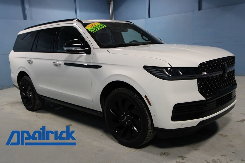 2025 Lincoln Navigator Reserve We want you to shop confidently for your next used car at The BIG Ford Store, D-Patrick Ford. We are located on Highway 41 and Walnut in Evansville, right next to the Lloyd Expressway. Buy this used vehicle 100% online or in-store. This pre-owned vehicle was put through an extensive inspection before hitting our lot. Because of this, we are able to offer a 3-month/3,000-mile comprehensive limited warranty. You also get our Love It or Return It 5-day, 300-mile Exchange Policy. See our website for more details on both. We also offer extended service plans, vehicle protection plans, and offer a CarFax vehicle history report. *Prices listed do not include a $250 documentation fee, applicable tax, title, tags, license, or $195 service and preparation. All pricing, vehicle information, and features (such as accessories and color) are believed to be accurate, but we do not warrant or guarantee such accuracy. The prices shown above may vary from region to region, and incentives are subject to change. Some offers listed may not be available to all customers. All online sale commitments are subject to confirmation of continued availability of vehicle. Once availability is confirmed, online sale agreement becomes binding upon the parties. If any information found on the website is thought to be erroneous, please verify information with a customer service representative. See dealer for full details. Looking to sell your current vehicle? We buy cars for cash. Every test drive at D-Patrick Ford in Evansville earns $10 to a local charity. Schedule your test drive today! 4WD, Black Onyx Leather, 28 Speakers, 3rd row seats: split-bench, 4-Wheel Disc Brakes, ABS brakes, Adaptive suspension, Adjustable pedals, Air Conditioning, All-Weather Flr Liners w/o Fr & Rr Carpet Flr Mats, Alloy wheels, AM/FM radio: SiriusXM with 360L, Apple CarPlay/Android Auto, Audio memory, Auto High-beam Headlights, Auto Htd & Ventilated Premium Lthr Captain's Chair, Auto Start-Stop Technology, Auto tilt-away steering wheel, Auto-dimming door mirrors, Auto-dimming Rear-View mirror, Auto-leveling suspension, Automatic temperature control, Black Accent Badge, Black Accent Interior Pack, Black Beltline Molding, Black Painted Roof Rails, Brake assist, Bumpers: body-color, Compass, Delay-off headlights, Driver door bin, Driver vanity mirror, Driver's Seat Mounted Armrest, Dual front impact airbags, Dual front side impact airbags, Electronic Stability Control, Emergency communication system: 911 Assist, Equipment Group 202A Reserve II, Exterior Parking Camera Rear, Four wheel independent suspension, Front anti-roll bar, Front Bucket Seats, Front Bumper Fascia, Front dual zone A/C, Front reading lights, Fully automatic headlights, Garage door transmitter, Heated door mirrors, Heated front seats, Heated rear seats, Heated steering wheel, HVAC memory, Illuminated entry, Jet Appearance Package, Leather steering wheel, Lincoln Connect, Lincoln Lit Star, Lincoln Premium Connectivity, Low tire pressure warning, Memory seat, Navigation system: Connected Navigation (1-year trial), Occupant sensing airbag, Outside temperature display, Overhead airbag, Overhead console, Panic alarm, Passenger door bin, Passenger seat mounted armrest, Passenger vanity mirror, Pedal memory, Power adjustable rear head restraints, Power door mirrors, Power driver seat, Power moonroof: Panoramic Vista Roof, Power passenger seat, Power steering, Power windows, Radio data system, Radio: Revel Ultima 3D AM/FM/HD Audio System, Rain sensing wipers, Rear air conditioning, Rear anti-roll bar, Rear audio controls, Rear reading lights, Rear window defroster, Rear window wiper, Reclining 3rd row seat, Remote keyless entry, Security system, SiriusXM w/360L, Speed control, Speed-sensing steering, Speed-Sensitive Wipers, Split folding rear seat, Spoiler, Steering wheel memory, Steering wheel mounted audio controls, Tachometer, Telescoping steering wheel, Tilt steering wheel, Traction contr